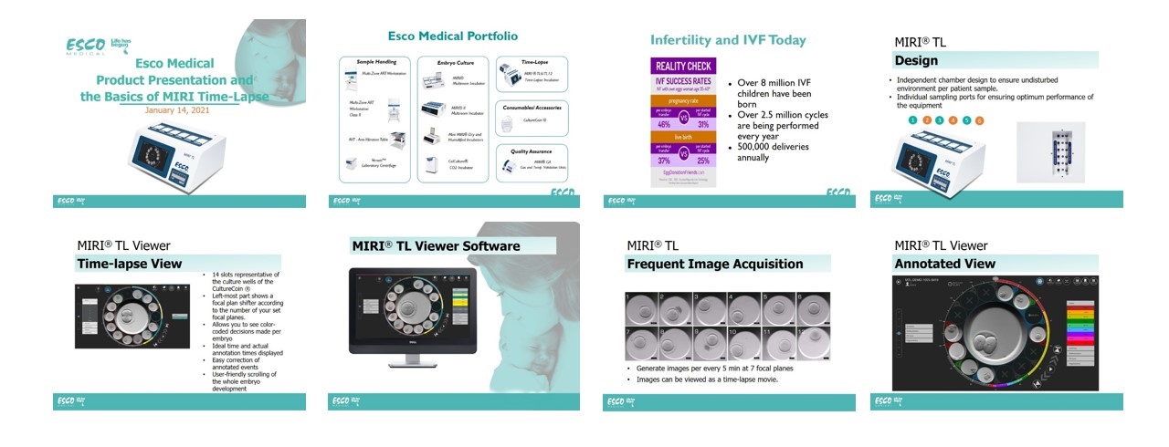去年1月14日,来自印度的IVF专业人士举办了一场关于“Esco Medical产品和MIRI延时摄影基础知识”的网络研讨会。Esco业务拓展经理Amit Singh组织了这次简短的在线研讨会,由Esco Medical产品专家Mark Lester Sotelo和Esco医疗应用专家John Frederick Manalo担任讲者。